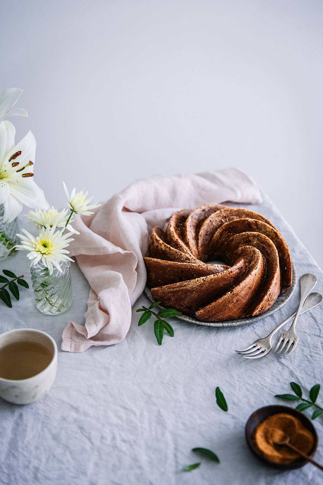 Versez la pâte dans un moule à bundt cake et faites cuire 45 bonnes minutes à 180°C.